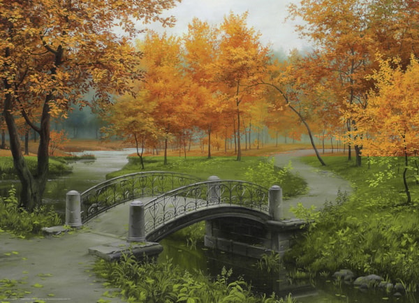 - En esta pintura realista de paisaje de Evgeny Lushpin, puedes transportarte a un día típico de otoño.