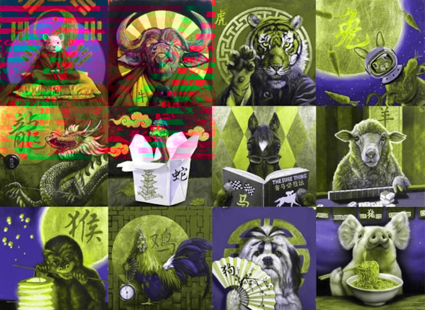 - Dieses Bild feiert den chinesischen Kalender. Künstlerin Lucia Heffernan ist bekannt dafür, Tiere in einem verspielten Stil darzustellen.