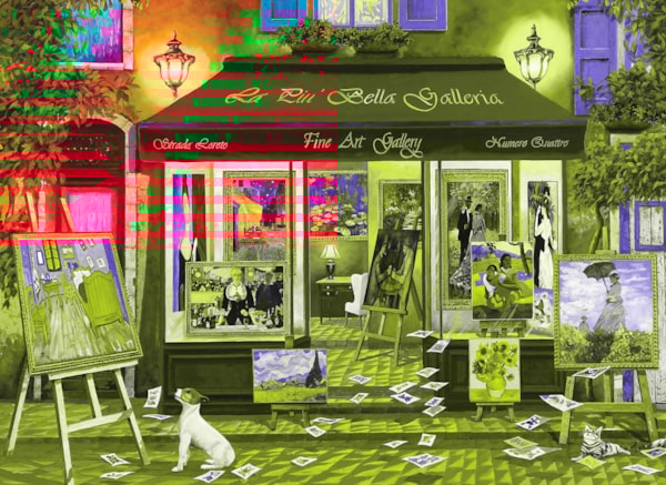 Ta wymagająca i satysfakcjonująca łamigłówka przedstawia oszałamiający obraz tętniącej życiem galerii sztuki, uzupełnionej różnorodnymi obrazami, rzeźbami i innymi dziełami sztuki.