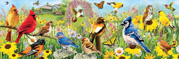 EuroGraphics Garden Birds Panoramic by Greg Giordano 1000-Piece Puzzle.