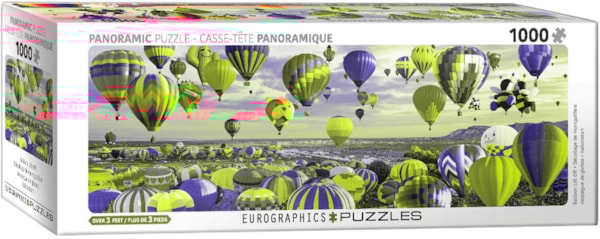 ¡Alza el vuelo con el rompecabezas panorámico de 1000 piezas Despegue de Globo de Eurographics! Este colorido rompecabezas muestra una impresionante variedad de globos aerostáticos flotando sobre el paisaje. ¿Sabías que el primer vuelo en globo aerostático se realizó en 1783 en Francia gracias a los hermanos Montgolfier?