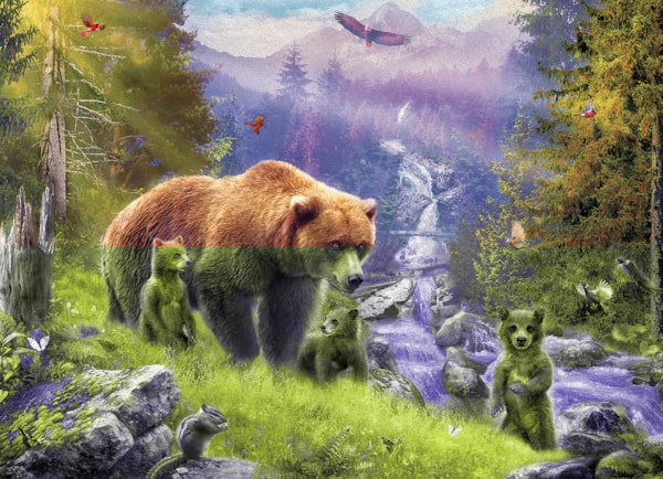 Oversize pieces- A momma bear and her cubs in this enchanted forest scene.