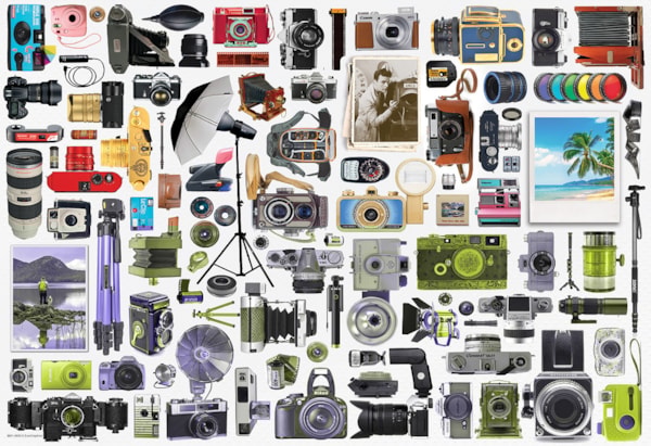 - Po wynalezieniu filmu Kodak i aparatu Kodak przez George'a Eastmana w latach 80. XIX wieku, fotografia amatorska stała się powszechnie popularna, a aparatów było wiele i różnorodnych. Dziś kolekcjonerzy zwykle zdobywają stare aparaty ze względu na ich unikalne wzornictwo, a nie jakość zdjęć. Styl Art Deco, kolorowe tworzywa sztuczne, reklama, marka i inne czynniki przyciągają kolekcjonerów aparatów zabytkowych. Stare aparaty fotograficzne produkowano w kilku rodzajach, w tym skrzynkowe, akordeonowe, z pojedynczym obiektywem, z podwójnym obiektywem, z obiektywem 35 mm i aparaty natychmiastowe. Kolekcjonerzy aparatów zabytkowych poszukują wczesnych drewnianych skrzynek używanych przez profesjonalnych fotografów. Inni kolekcjonerzy preferują różnorodność aparatów osobistych produkowanych dla ogółu. Szczególnie cenione są stare aparaty 35mm, a niektóre z najcenniejszych aparatów to właśnie aparaty 35mm. Kolekcjonerzy mogą także interesować się starymi aparatami natychmiastowymi, zwłaszcza oryginalnym modelem Polaroid Land Camera z 1948 roku.
