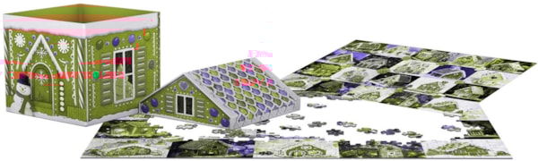 - Feiern Sie die Feiertage mit diesem einzigartigen Sammlerstück: einem Lebkuchenhaus-Puzzle-Set mit einer geformten Lebkuchenhaus-Dose.