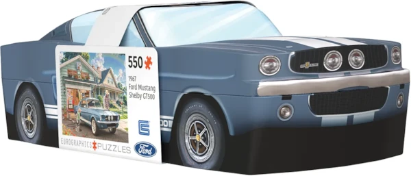 Start your engines! This collectible tin—shaped like the legendary ’67 Shelby GT500—holds a premium 550-piece puzzle featuring a heart-warming driveway scene with the iconic fastback. Crisp printing and sturdy pieces make every detail of the classic stripes and chrome pop, while the display-worthy tin doubles as décor or storage for car lovers. An officially licensed Ford product, perfect for gearheads, puzzle fans, and anyone who dreams in V8.