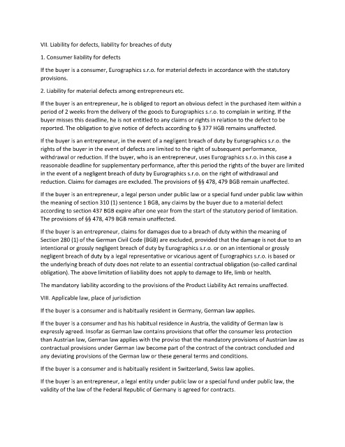 If the buyer is a consumer, Eurographics s.r.o. for material defects in accordance with the statutory