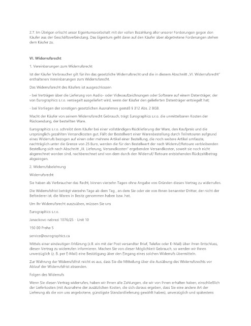 Macht der Käufer von seinem Widerrufsrecht Gebrauch, trägt Eurographics s.r.o. die unmittelbaren Kosten der
