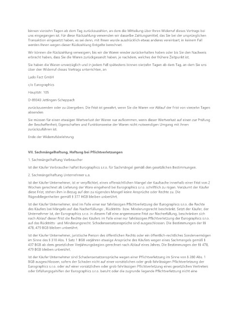Wochen gerechnet ab Lieferung der Ware eingehend bei Eurographics s.r.o. schriftlich zu rügen. Versäumt der Käufer