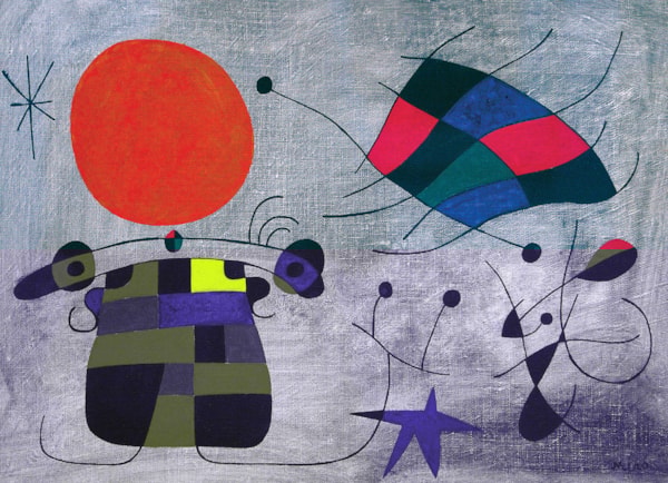 - Joan Miro est un peintre Spainish qui a deux musées en Espagne dédié à ses œuvres. Ce tableau a été créé en 1953 et il a été le premier d'une série inspirée par des dessins rupestres préhistoriques.