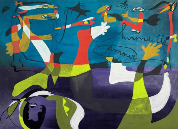 - Joan Miro est un peintre Spainish qui a deux musées en Espagne dédié à ses œuvres. Créé en 1933-1934, ce tableau a été la conception pour être transformé en une tapisserie murale.
