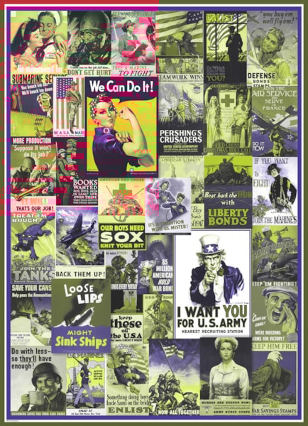 - Un collage historique en l'honneur des soldats américains et les gens de la Première Guerre mondiale et la Seconde Guerre mondiale. Célébrez l'esprit américain avec les symboles emblématiques de l'époque.