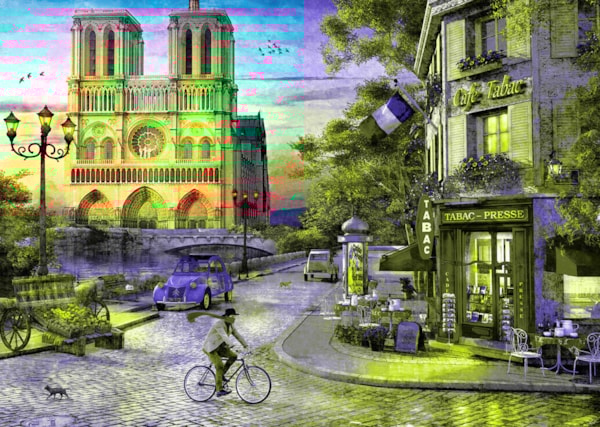 Tauchen Sie ein in den Charme von Paris mit diesem beeindruckenden 1000-teiligen Puzzle, das die ikonische Kathedrale Notre Dame bei Sonnenuntergang zeigt, wie sie vom renommierten Künstler Dominic Davison erdacht wurde. Eingebettet in eine belebte Pariser Straße, fängt dieses Kunstwerk die zeitlose Schönheit der Notre Dame in goldenen Tönen ein, ergänzt durch ein lebendiges Tabac-Presse-Café und eine pulsierende Kopfsteinpflaster-Szene, die das Herz der französischen Kultur widerspiegelt.