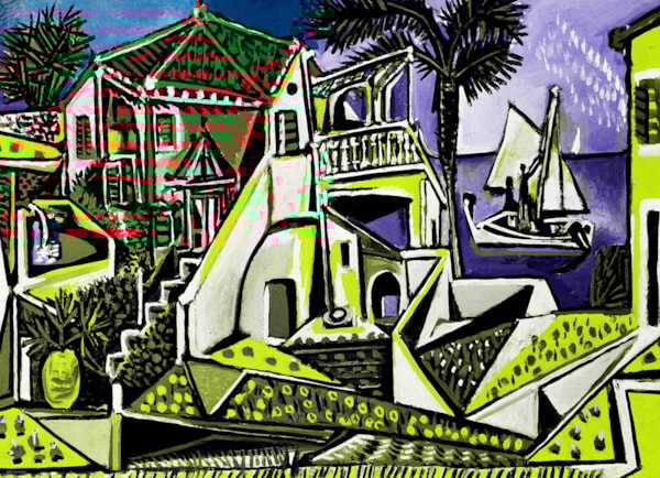 - Paysage méditerranéen, 1953 est une peinture cubiste de Pablo Picasso. Les paysages cubistes constituaient une nouvelle direction dans l'art espagnol, remplaçant un vide laissé par des désaccords politiques qui décourageaient l'art du paysage plus traditionnel des siècles précédents.