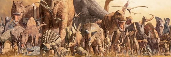 - Cette oeuvre populaire présente tous les dinosaures qui alimentent notre imagination. Le tyrannosaure féroce marche à côté des tricératops et la brachiosaurus dans un défilé passionnant.