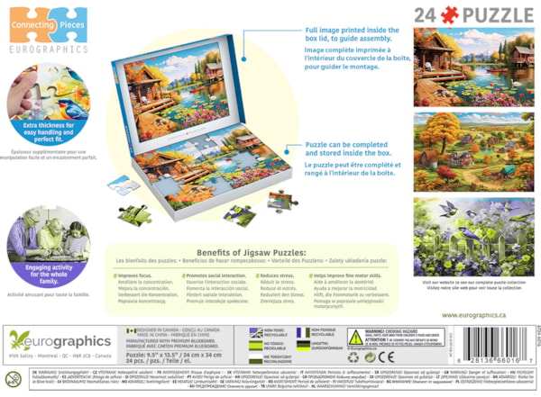 Presentamos el puzzle "Cabaña junto al Lago" de la colección Piezas Conectadas de Eurographics, especialmente diseñado para el bienestar cognitivo. Este puzzle de 24 piezas, con la imagen de una tranquila cabaña junto al lago, está pensado para apoyar a personas con demencia o desafíos cognitivos. Con piezas extra grandes y fáciles de manejar, junto con una imagen relajante, este puzzle ofrece una actividad suave y atractiva que fomenta la concentración, la relajación y la estimulación mental. La imagen completa impresa en la tapa de la caja ayuda en el montaje, convirtiéndose en una actividad ideal para mantener las habilidades motoras finas y fomentar la interacción social, todo mientras disfrutas de la tranquilidad de un paisaje pintoresco.