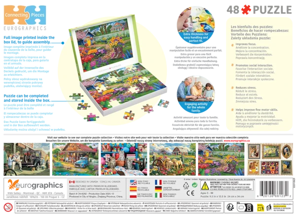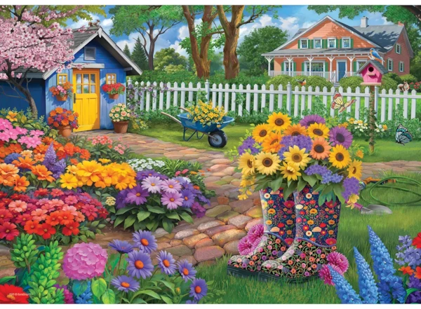 Plongez dans un jardin champêtre rempli de couleurs, où des bottes de pluie à motifs débordent de fleurs rayonnantes. Les pièces épaisses et surdimensionnées sont faciles à manipuler et s’emboîtent parfaitement. L’image de référence est imprimée à l’intérieur du couvercle, et le puzzle peut être assemblé et rangé dans la boîte—une activité familiale apaisante qui favorise la concentration, la patience et la motricité fine.