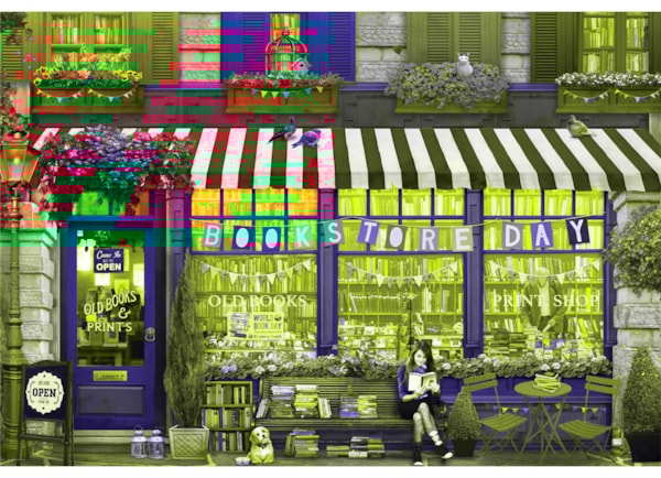 Tauchen Sie ein in den Zauber eines zeitlosen literarischen Paradieses mit Der Alte Buchladen, einem 2000-teiligen Oversize-Puzzle aus der Die Große Puzzle-Kollektion von Eurographics. Dieses atemberaubende Bild fängt die Wärme und Nostalgie eines gemütlichen Buchladens ein, der mit farbenfrohen Büchern, lebhaften Blumen und einladenden Sitzgelegenheiten ausgestattet ist.